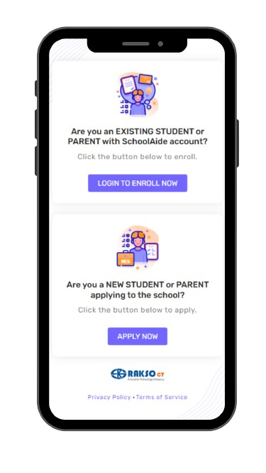Navigate to “Are you an existing student or parent with SchoolAide Account?”